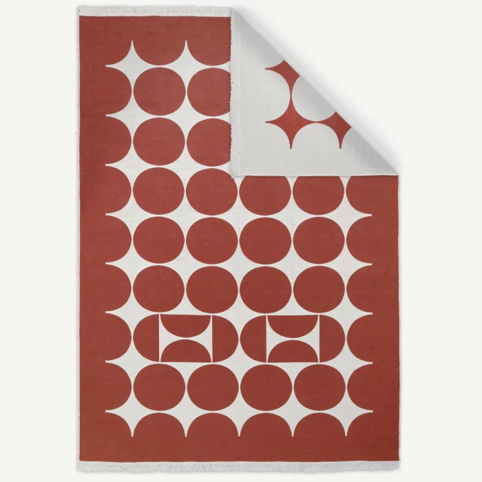 Circle Flat Weave Mid Century Rug Black Geometric Retro Area Accent Runner Rug