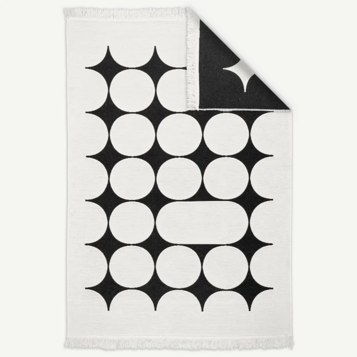 Circle Flat Weave Mid Century Rug Black Geometric Retro Area Accent Runner Rug