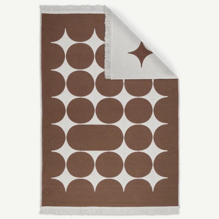 Circle Flat Weave Mid Century Rug Black Geometric Retro Area Accent Runner Rug