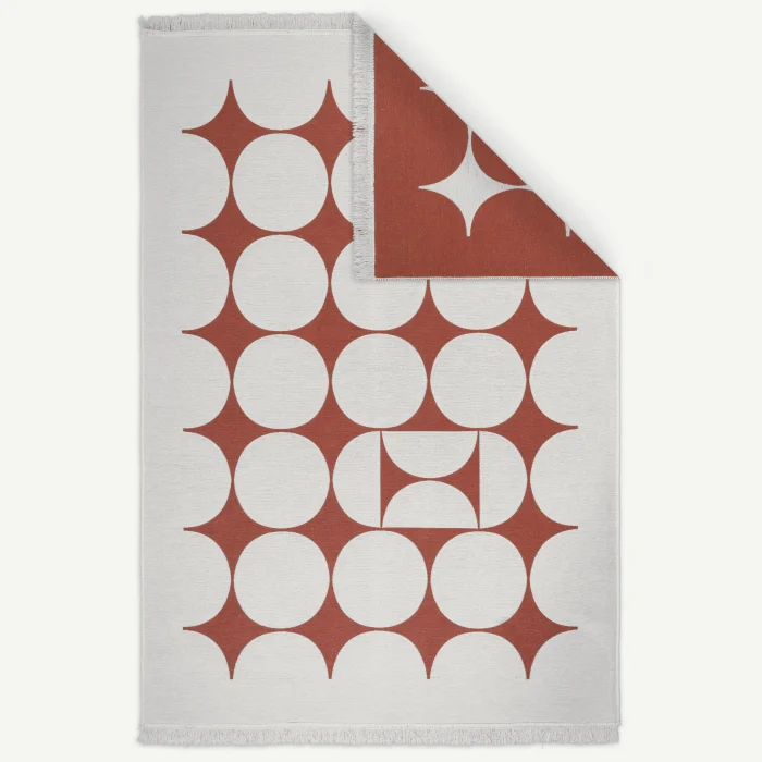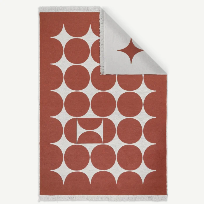 Circle Flat Weave Mid Century Rug Black Geometric Retro Area Accent Runner Rug