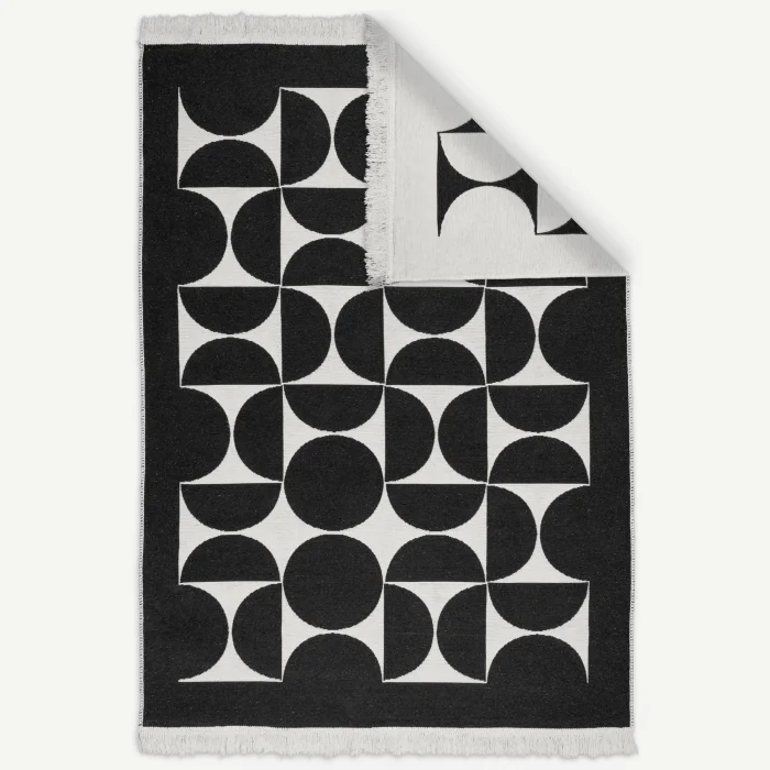 Square Flat Weave Mid Century Rug Black Geometric Retro Area Accent Runner Rug
