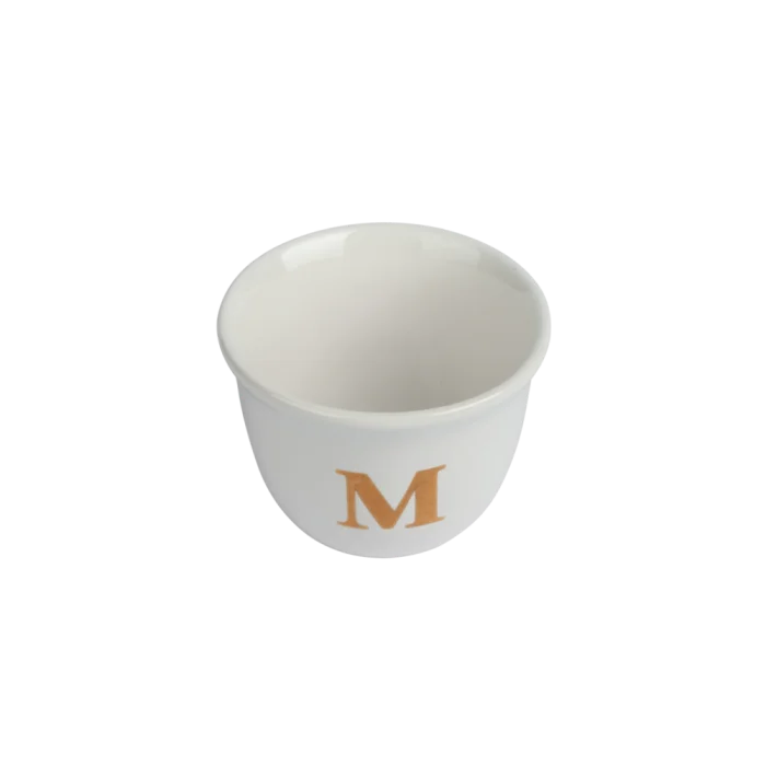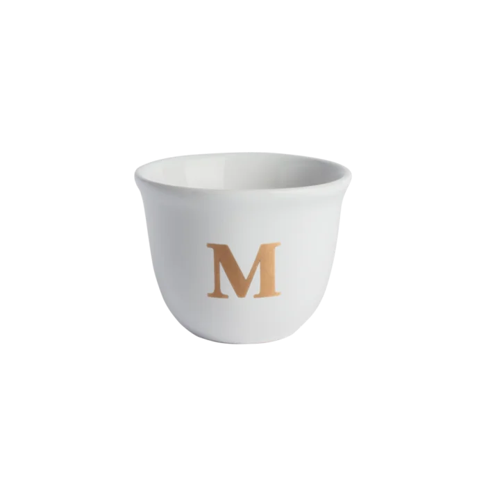Handmade monogram espresso cup with gold detail.