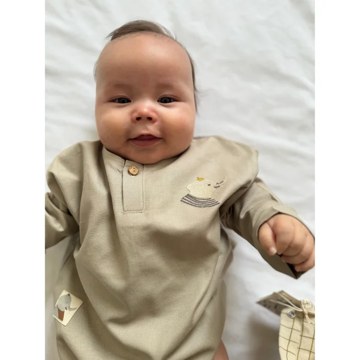 • 100% organic cotton flannel fabric – Certified • Organic embroidery detail • Olive wooden button on collar • Loose fit • Made in Turkey