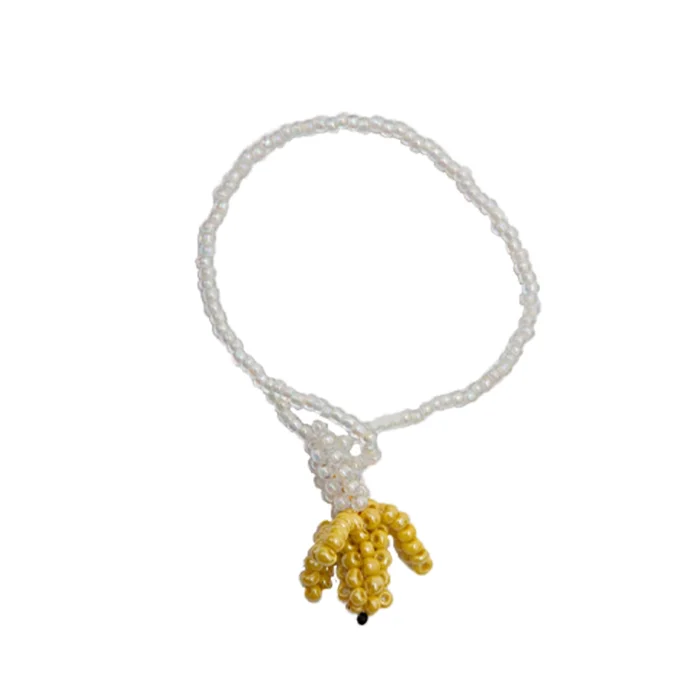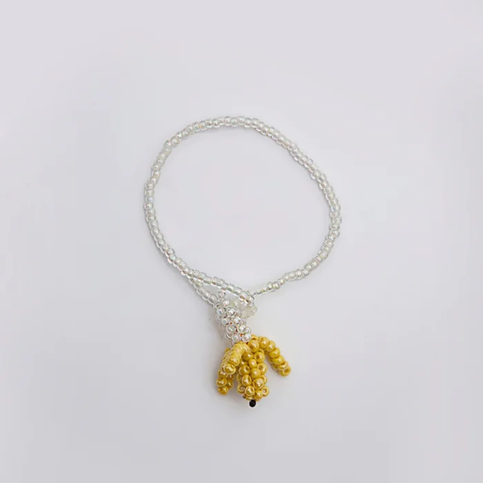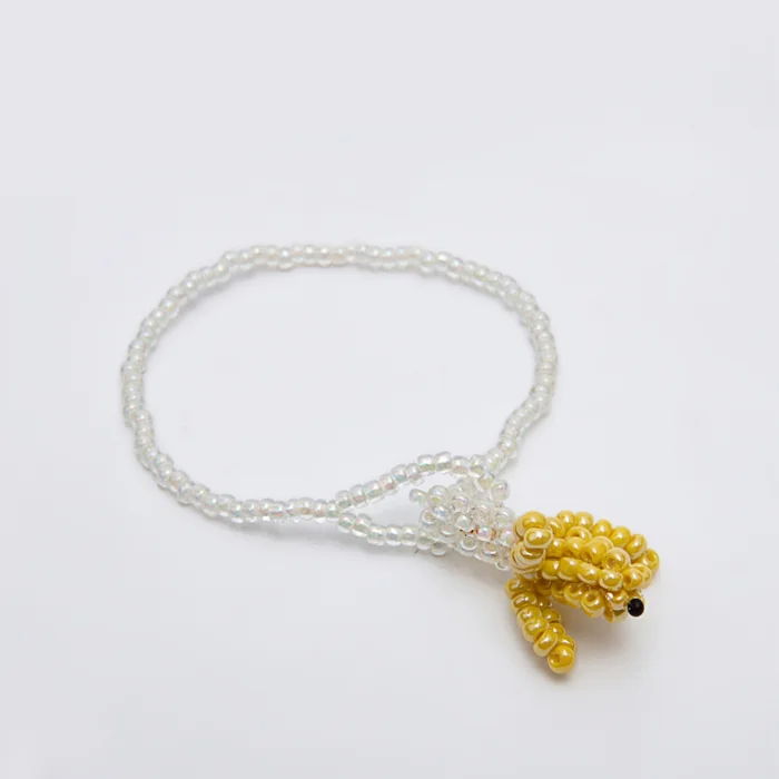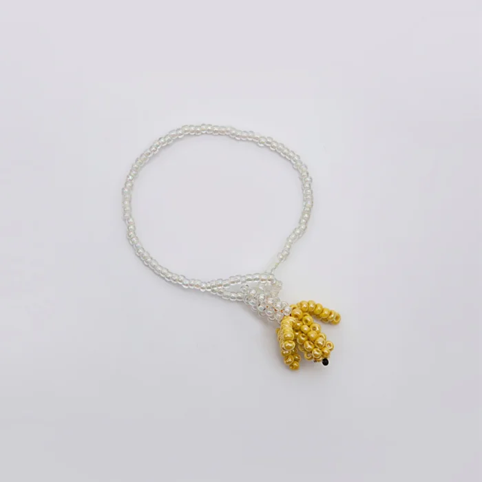 It is formed by knitting millimetric glass sand beads with fishing line for long hours. Custom design, Handmade.