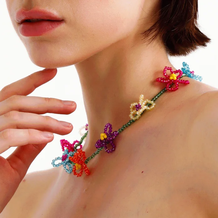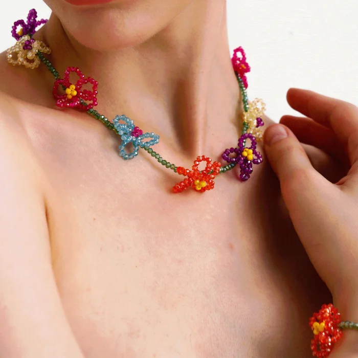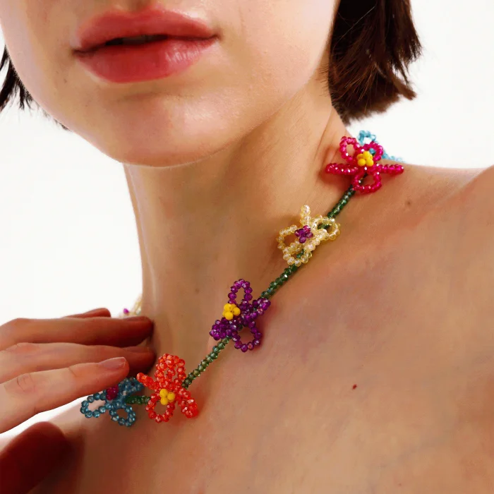 It is produced by knitting millimetric crystal beads with a fishing line with a resistance capacity of 8+kg.