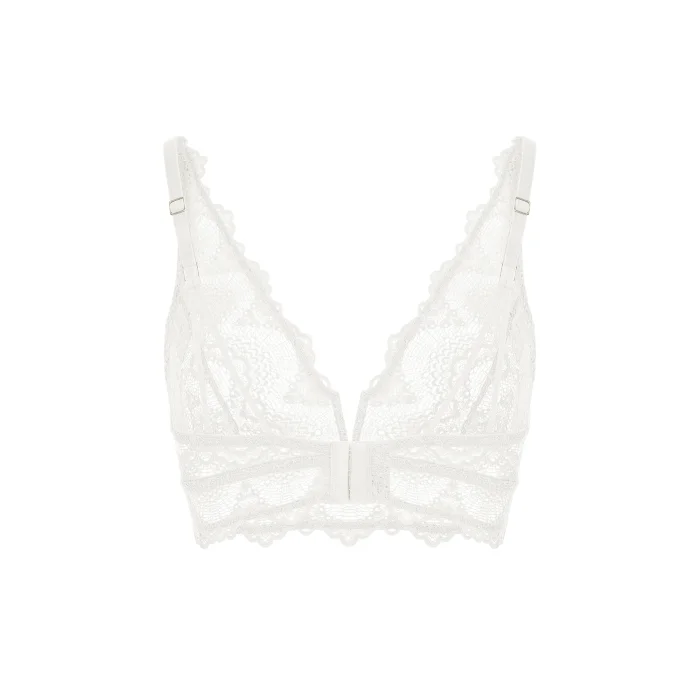 AYJE Flame V-Neck Bralette, which has a simple design line, hugs the body with the softness of premium lace fabric. It appeals to refined styles with its adjustable strap detail, silver accessories and eye-catching cleavage. AYJE Flame product line offers a long service life with its superior fabric quality and timeless design.