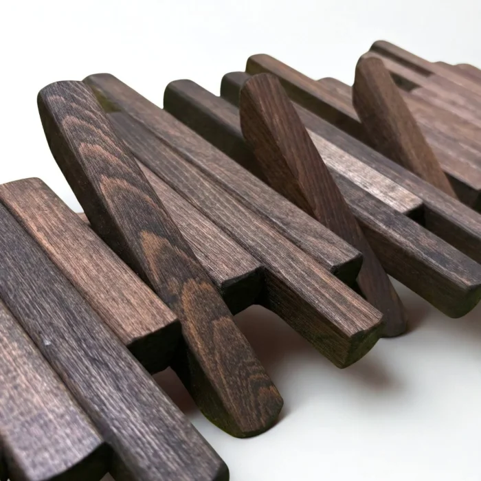 Material, Quality, and Strength: Crafted from premium kiln-dried 100% solid beech wood, known for its durability and hardness. Thanks to its robust construction, it offers a maximum load capacity of up to 30 kg in total (with a solid wall mount). The natural surface of the wood is protected by natural oils that are suitable for food contact, certified and harmless to health, so it maintains its beauty for many years.