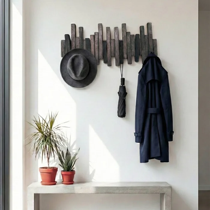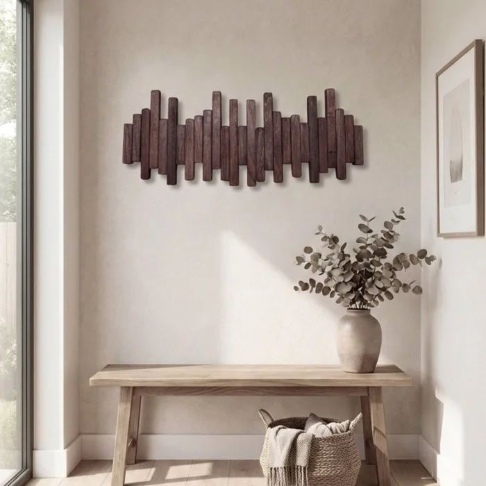 Design and Functionality (Dual Use): With its piano key-inspired design, this product is more than just an ordinary hanger. The 6 sturdy wooden hooks that open downwards when you need them safely carry your jackets, bags, and belongings. When not in use, you can turn these hooks into a flat, modern wall décor (panel) that reflects the natural texture of wood by lifting them up and closing them. This clever opening and closing mechanism offers a minimalist aesthetic while saving space in tight spaces.