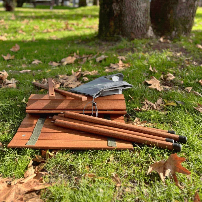 We designed the Bag the Joy Wooden Camping Table in such a way that when folded, the table becomes a roll and reaches the dimensions of standard camping chairs with its legs. In this way, it fits easily in your luggage in its special bag and is easily carried on your shoulder.