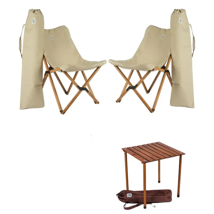 BAG THE JOY WOODEN FOLDING TABLE CHAIR SET – 50 * 50 * 55cm BROWN – BEIGE