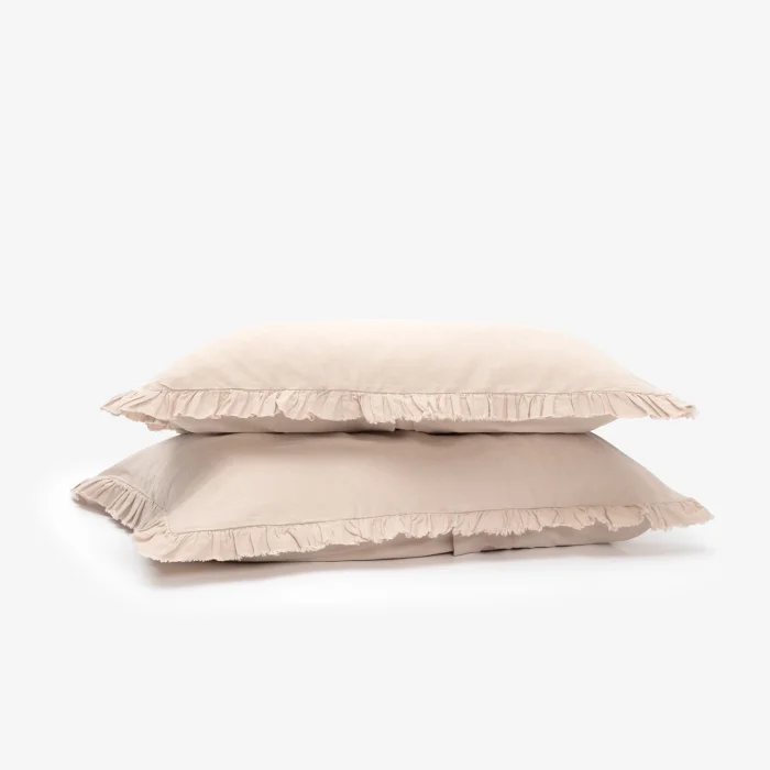 While the Frill Pillowcase adds elegance to your bedroom with its sophisticated vintage look and elegant design, it offers a soft and comfortable sleeping experience thanks to the unique texture of the linen and cotton blend. Its washed fabric provides a feeling of freshness and vitality, enhancing your comfort every night.