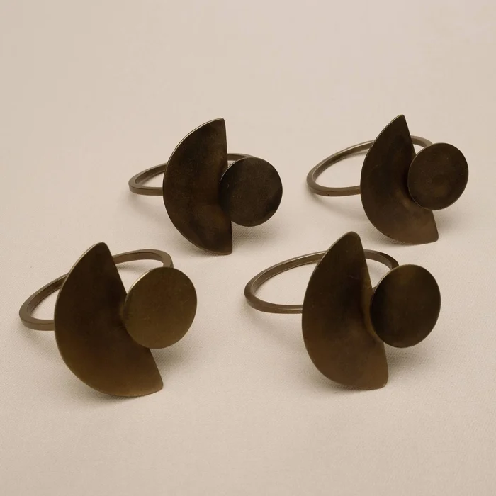 The Memphis napkin ring set, which draws attention with its elegant semicircular pattern, adds a modern and sophisticated touch to your tables. Produced with brass material with a bronze patina surface treatment, this set offers both quality and elegance together.; The 4.2 cm diameter rings add style to every moment, from special occasions to daily tables.; This four-piece set gives your table decoration an elegant integrity; Include details that make a difference on your table with the Memphis series.