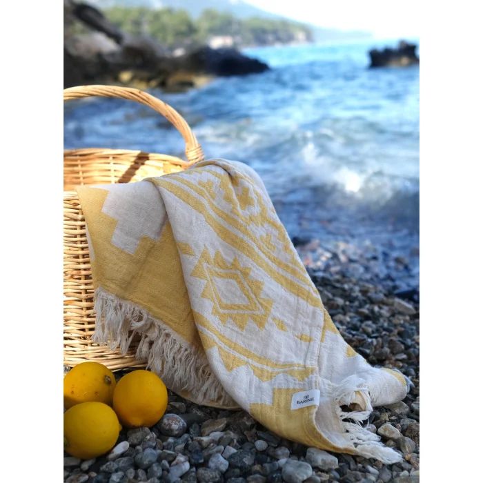 Rug Peshtemal adds a warm and original touch to your living spaces with its modern ethnic design and trendy colors of the season. Offering elegance and functionality together in every detail, this loincloth creates an eye-catching aesthetic with its comfortable structure and elegant tassel details. It provides practical use with its 100% cotton texture, superior water absorption capacity and fast drying feature. With its 90x160 cm size, it can be easily used both on the beach and in different areas such as bathrooms or picnics. It is also friendly to your skin and the environment with its pre-washed structure and Oeko-Tex certified safety.