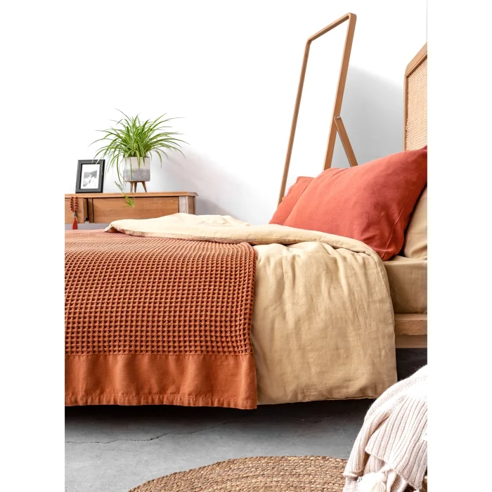 Waffle Bedspread offers extra soft use with its 100% cotton texture and final washing process. This cover, which can be used comfortably in all seasons, provides an elegant aesthetic and high comfort with its waffle texture. The Oeko-Tex Standard 100 certification guarantees that there are no more than 350 harmful chemicals, thus providing a safe option. This bedspread completes your bedroom with both elegance and functionality.