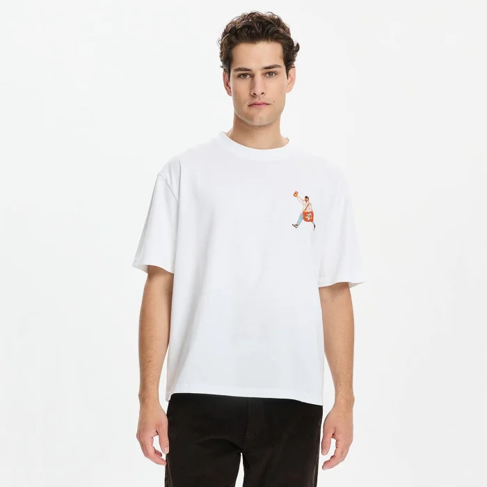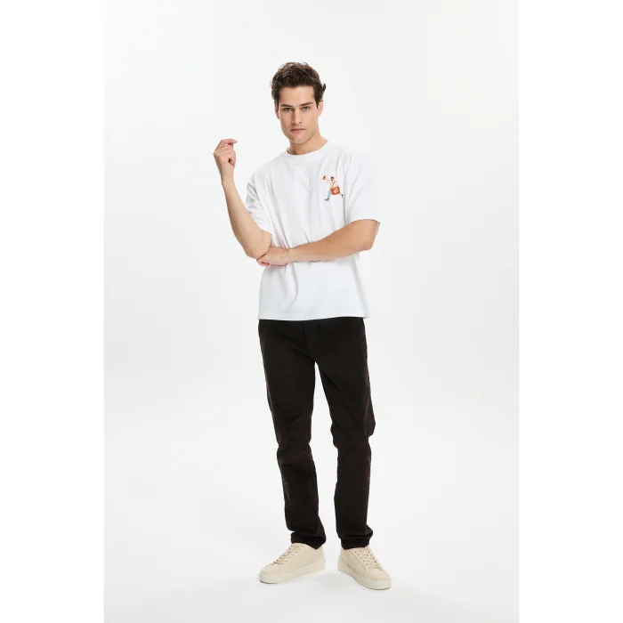 100% Good cotton short-sleeved loose-fitting round neck t-shirt with ribbed neckline. There is an embroidery design on the chest. The model is 1.87 meters tall and wears a size M. You can choose your own size. BSGMTMTS01