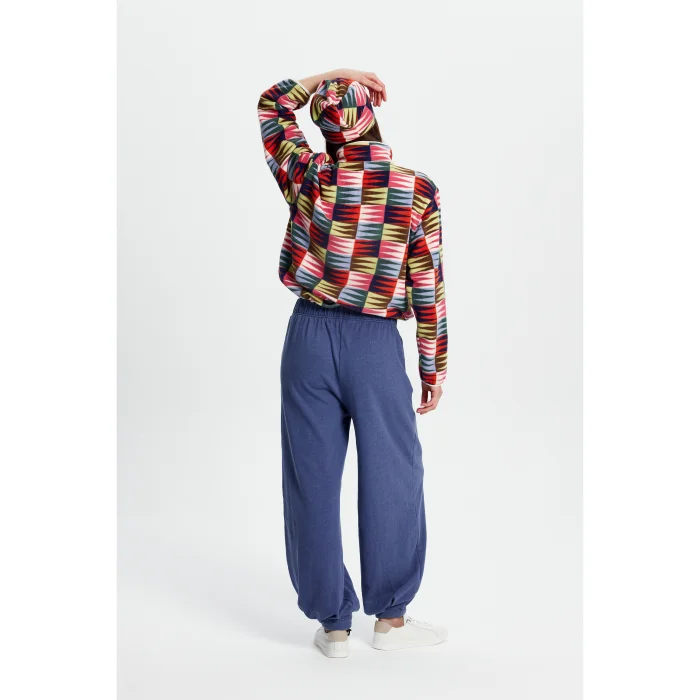 82% Good cotton, 18% Recycled polyester washed loose-fitting sweatpants with elasticated waist. It has a high waist and a hidden adjustable elastic at the wrist. The model is 1.74 meters tall and wears a size S. You can choose your own size.