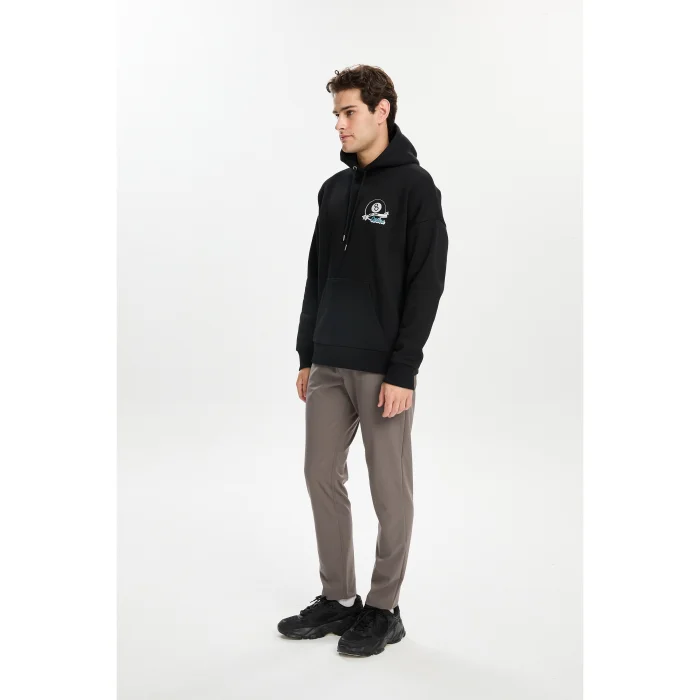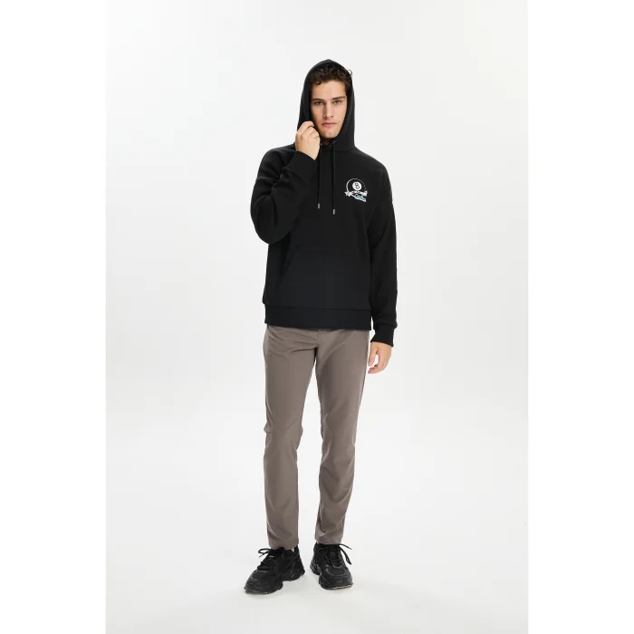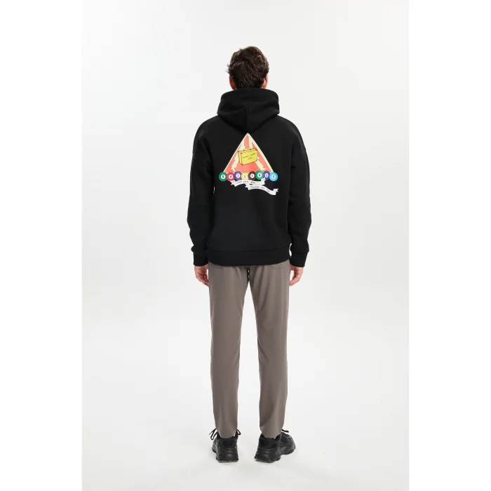 20% Recycled polyester, 80% Good cotton hoodie with kangaroo pockets at the waist and ribbed at the ankle. The hood has an adjustable cord. There is a small size embroidery design on the chest at the front and a large size print design on the back. The model is 1.87 meters tall and wears a size M. You can choose your own size. BSGMTMHD02