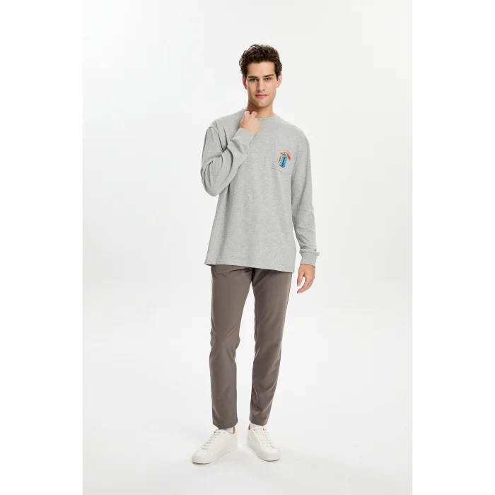 100% Good cotton long sleeve round neck t-shirt. There is an embroidery design on the pocket at chest level at the front. The model is 1.87 meters tall and wears a size M. You can choose your own size. BSGMTMLTS06