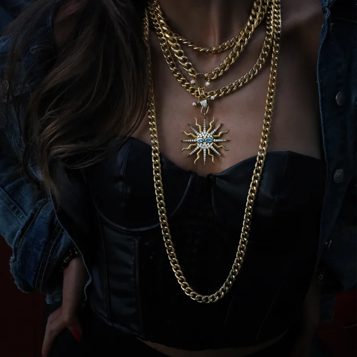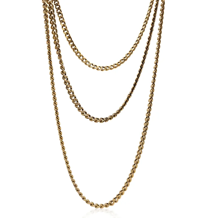 Production Type: Handmade Material: 22 carat gold-plated steel chain Length: 90 cm + 5 cm extension, 30 cm short chain