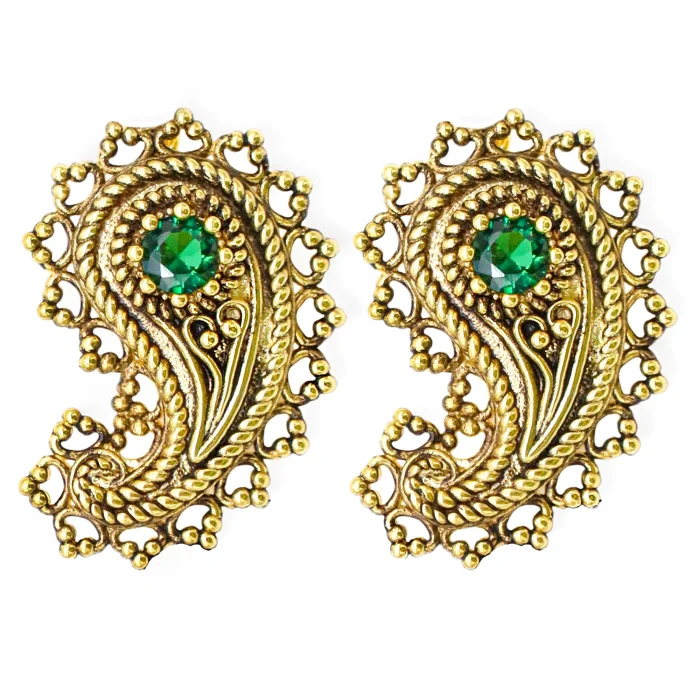 Production Type: Handmade Earrings Material: 22 carat gold-plated brass, crystal stone Length: 2.5 cm Weight : 4 gr