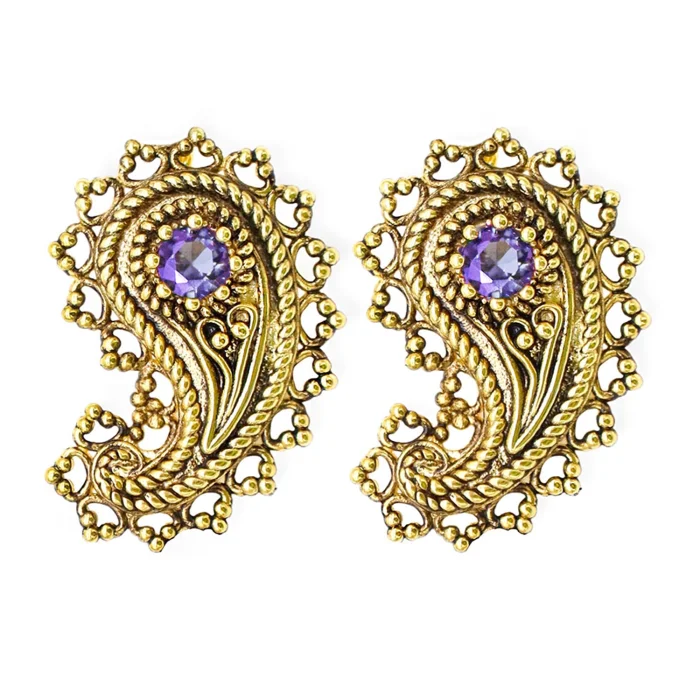 Production Type: Handmade Earrings Material: 22 carat gold-plated brass, crystal stone Length: 2.5 cm Weight : 4 gr