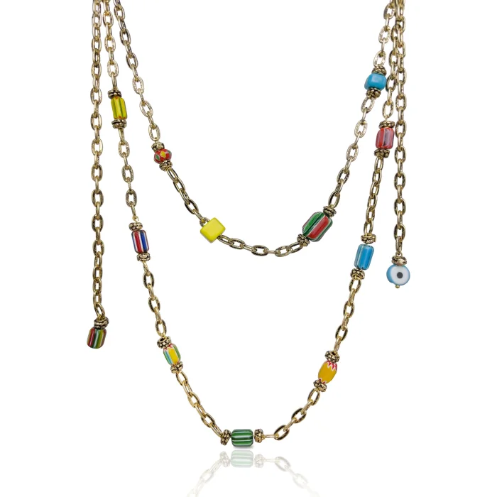 Production Type: Handmade Material: 22 carat gold plated chain on brass, murano stone, afghan stone, havlite stone Length: 60 cm + 5 cm extension chain
