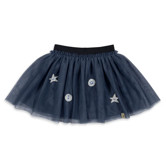 Two-layer tutu skirt with silvery elasticated waist elastic, 100% cotton single jersey inner lining and fun appliqué
