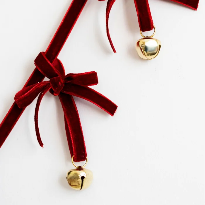 Decorate your tree, staircase or fireplace in true traditional christmas style with the "Velvet Bell Ribbon Chain" from the Beige & Stone christmas collection. Each with ten red bows and gold bells. Quantity: 1 Dimensions: Total: H 10 x L 140cm Gold bells: Diameter 2cm Made of Velvet ribbon and iron bells. Each chain consists of 10 bows and bells.