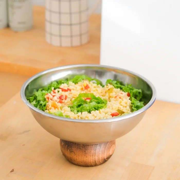 Metal 22 Cm Salad Bowl With Wooden Legs