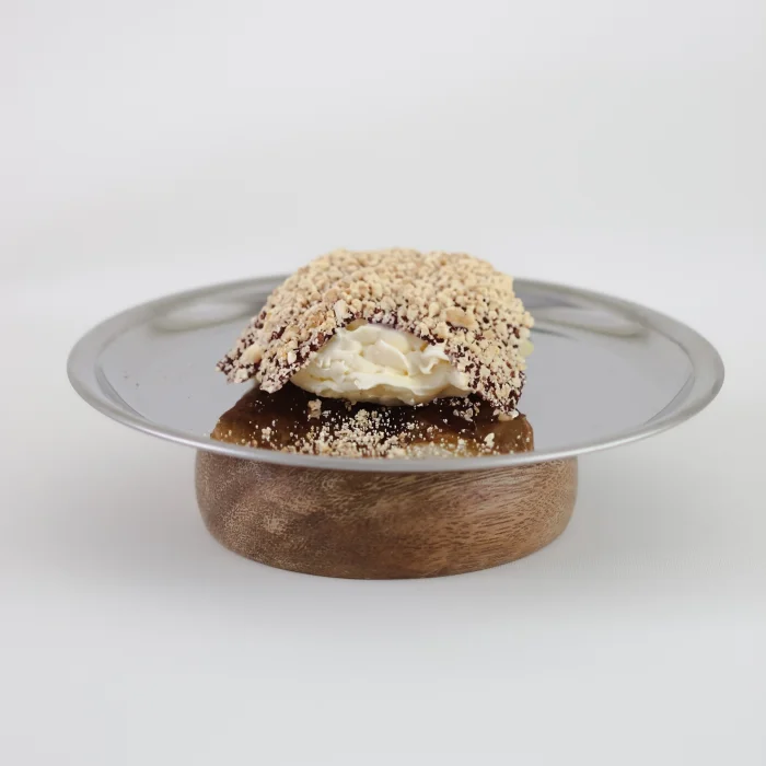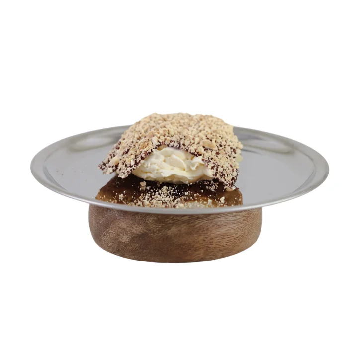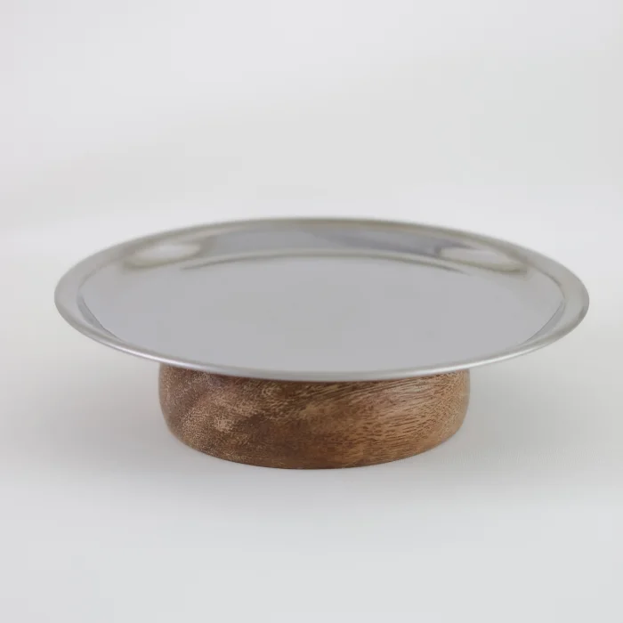 Wooden Base Metal Round Serving/presentation Plate Decorative Stand 18 Cm