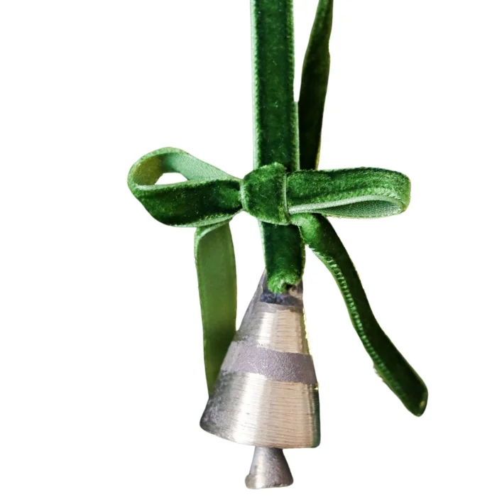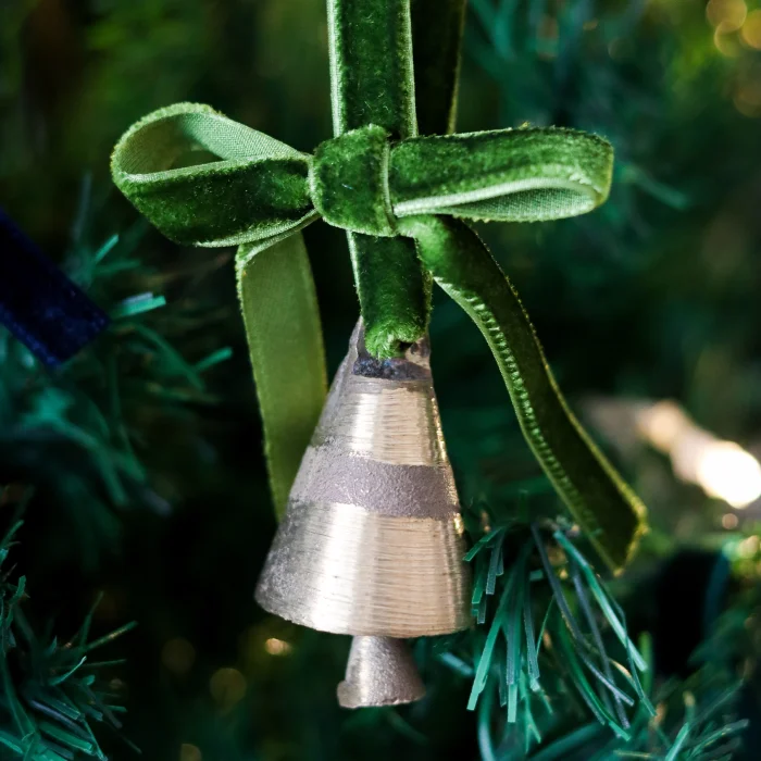 Decorate your tree in a real traditional Christmas style with the "Little Bell with Velvet Ribbon" from the Beige & Stone Christmas collection. Dimensions:; Ribbon: 12 cm ; Gold bells: H: 4 cm ; It is made of velvet ribbon and brass bell.