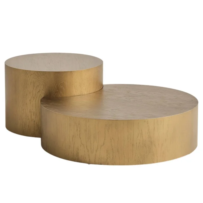 Product: Herman Wooden Round Double Coffee Table Set Brass