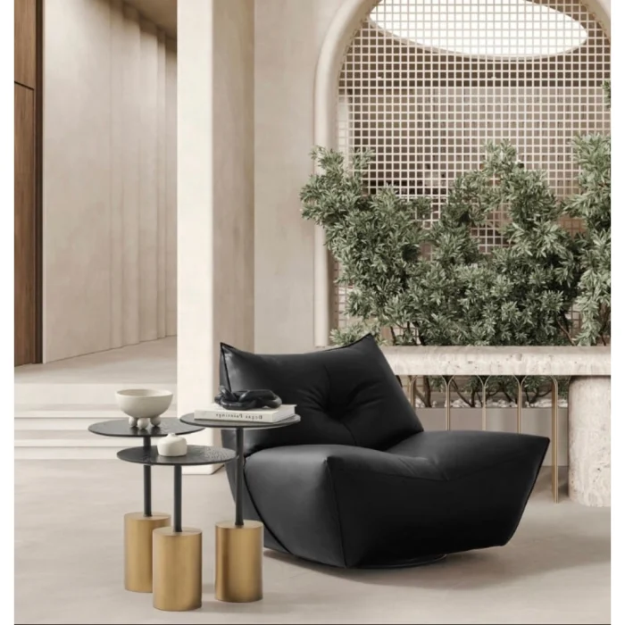 Java Comfort Swivel Metal Leg Armchair Leather Black