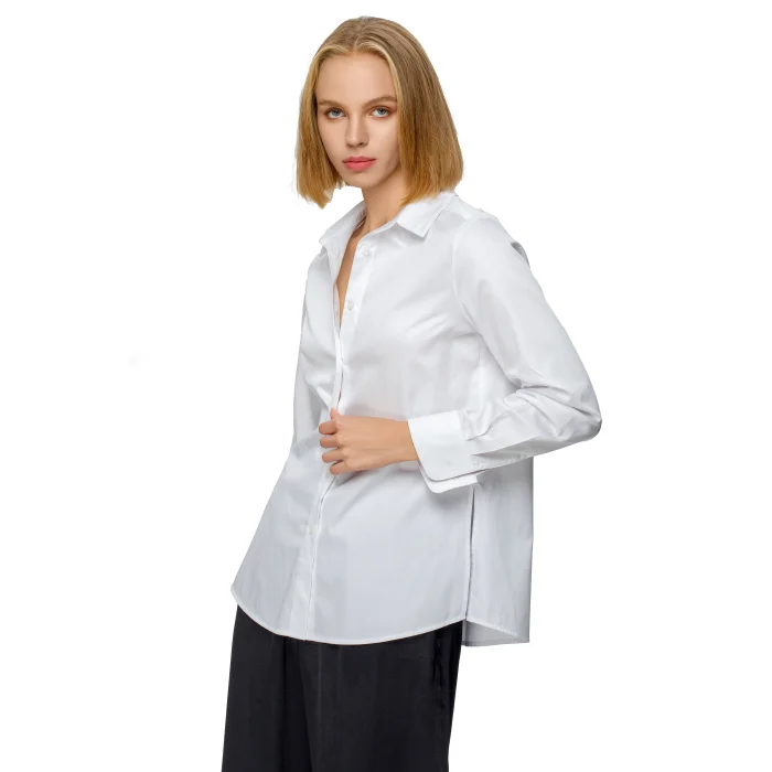 It is made of 100% Cotton fabric. Comfortable fit white classic shirt with slits on both sides and cuffs.