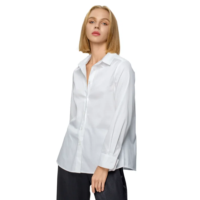 It is made of 100% Cotton fabric. Comfortable fit white classic shirt with slits on both sides and cuffs.
