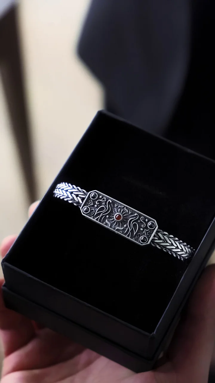 Handcrafted with exceptional care, this bracelet is made of 925 sterling silver and semi-precious natural stones: onyx and agate.