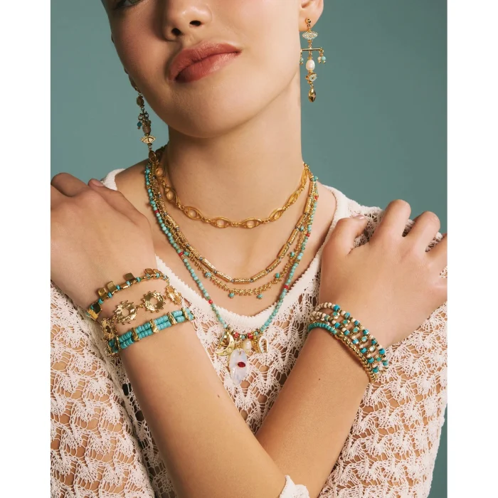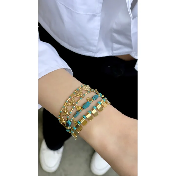 Turquoise beaded bracelet with gold-plated metals