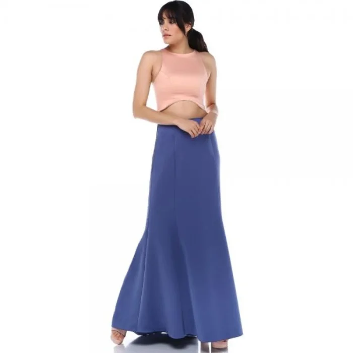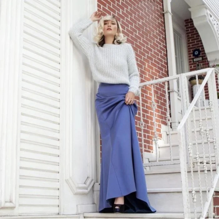 Fine silk crepe blue mermaid skirt