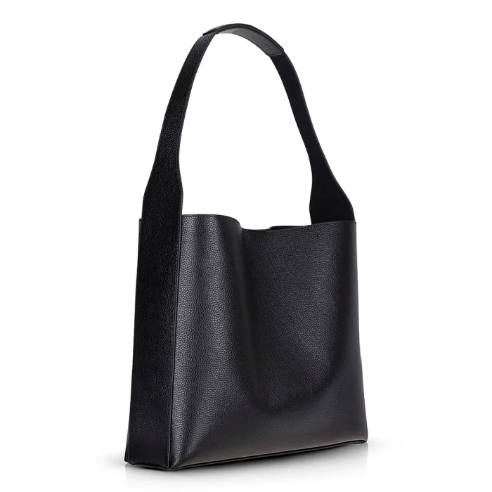Siena Minimal Tote – Onyx Black Genuine Leather Wide Strap Women's Shoulder Bag Timeless design, clean lines and impeccable comfort for everyday use. The Siena Minimal Tote offers effortless elegance from the office to the weekend with its wide strap and natural textured genuine leather. The Siena Minimal Tote is a modern leather shoulder bag that combines minimal design with functional details. It is handcrafted from 100% genuine leather and beautifies against time thanks to its natural full-grain texture. The wide shoulder strap provides comfortable use all day long, while the spacious interior volume easily carries your tablets, wallets, phones, cosmetics and daily items. The magnetic closure system offers quick and secure access. Its unlined structure makes the bag light, lean and urban. Whether for office days or casual combinations, Siena is an effortless style complement.