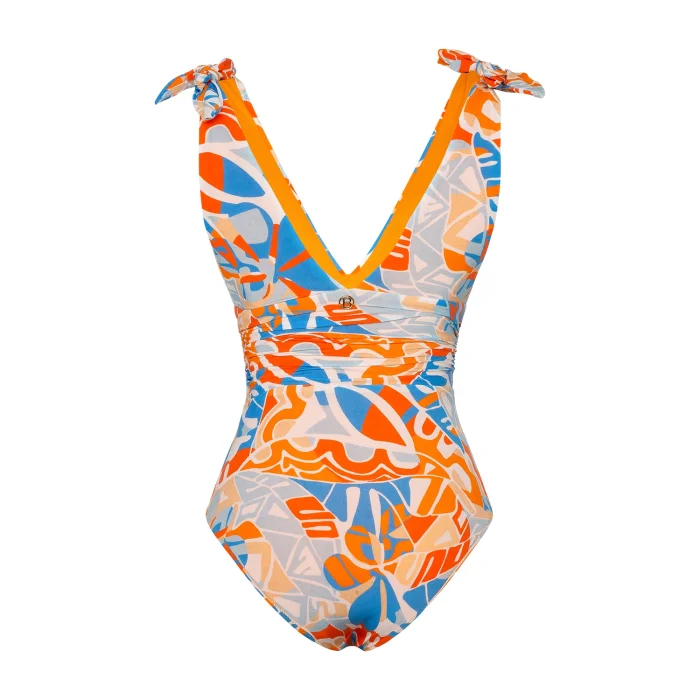 Product: Cholla Abstract Floral Pattern Laced V Neck Swimsuit