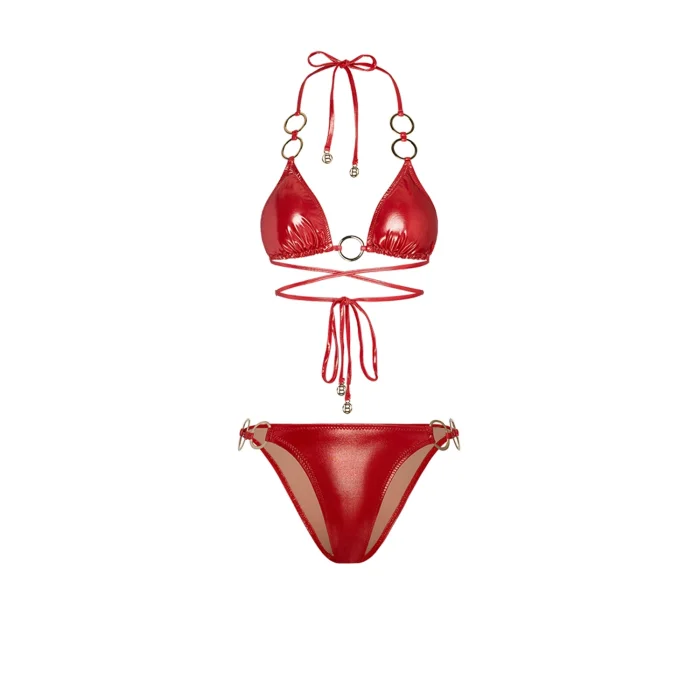 Product: Escalante Shiny Crimson Red Ring Accessory Triangle Bikini Set
