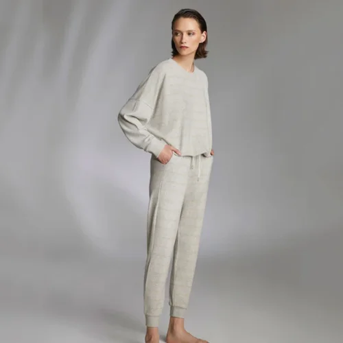 It offers flexibility and comfort thanks to its 66% polyester, 26% viscose and 4% elastane content, which stands out for its soft texture; With its design that appeals to all age groups, it provides suitability for a wide range of users.; While the woven fabric structure contributes to the durability of the pajama set, it also provides a comfortable use with its lightness; Offering a timeless elegance with its simple and flat design, this pajama set is ideal for those who adopt simple beauty in home wear.; Enriched with Lurex details, the glitter of this pajama set adds a sparkling touch to your nights, while at the same time you do not compromise on your elegance;
