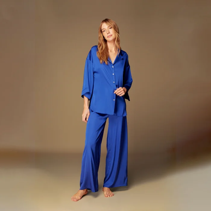 The plain patterned pajama set, which appeals to all age groups with its simple and stylish design, offers comfort and elegance together at home; Thanks to its woven fabric structure, it is ideal for long-term use and provides a comfortable sleeping experience; With its 97% polyester and 3% elastane material component, it offers flexibility and durability and adapts perfectly to your body lines; While it achieves a simple and modern look with its straight cut, it allows you to complete your home wear in a practical way;