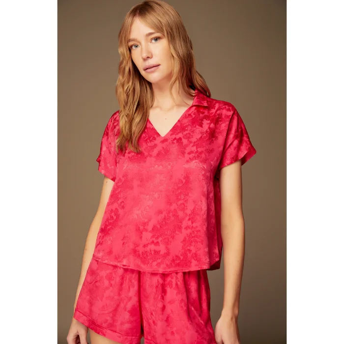 A pajama shorts set that everyone can easily choose with its design suitable for all age groups; Thanks to its woven fabric structure, it offers durability and comfort together; With 100% viscous material component, it guarantees soft touch and breathability; With its simple and elegant appearance, the flat design combines comfort and style; It is designed as an indispensable part of the underwear collection; provides elegance and comfort at home;