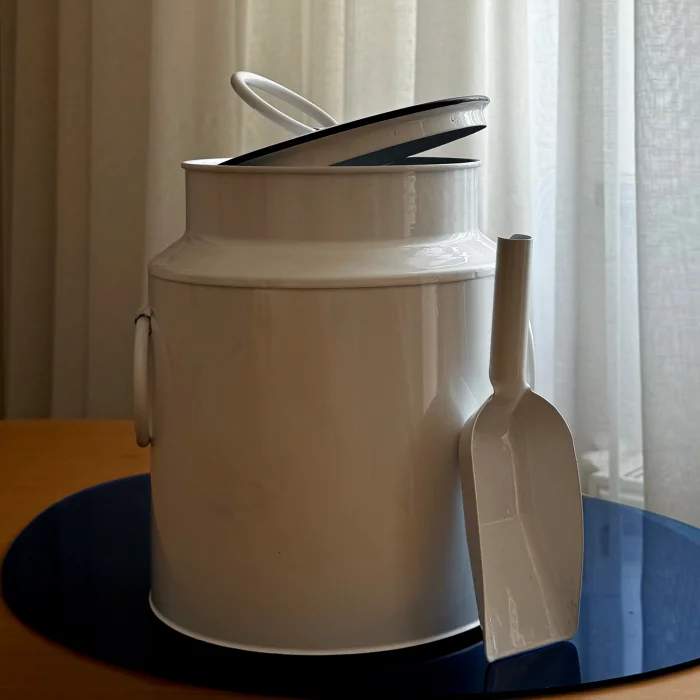 Its width is 18 cm, and its length is 22 cm. It has a volume of 10 Lt. The shovel comes with the product. It is washable, resistant to water. It does not rust and stain. It does not leak. It is made of galvanized.