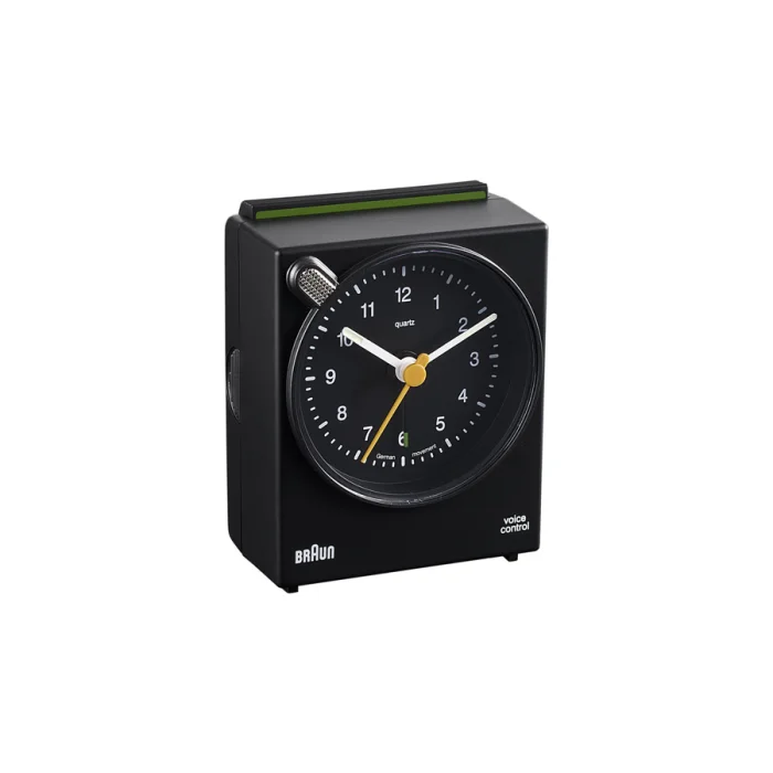Imported, quiet german precision quartz movement, voice activated snooze function , Crescendo alarm, 65mm wide x 81mm height x 38mm thick, battery included , Analog Display , Case Diameter: 65mm , Diameter: 65mm.