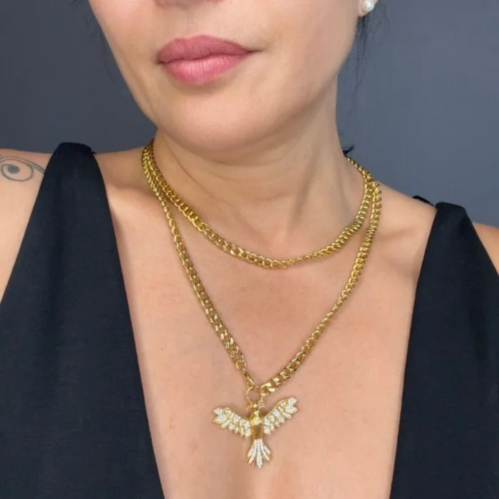 Zircon stone tarnishing quality premium gold phoenix detailed, high quality premium plated chain detailed necklace.; Our necklaces are specially produced one by one for modern, stylish, urban women with sporty elegance and chain details. ; Gold spacers are premium coating that does not tarnish; ; You can enjoy it for many years; ; A story about the phoenix is as follows: "It is rumored that the Simurgh (Phoenix in the Phoenix), the ruler of the birds, lived in the branches of the Tree of Knowledge and knew everything; The peculiarity of this bird is that its tears are healing, and it dies by burning to ashes, then rises again from its own ashes;