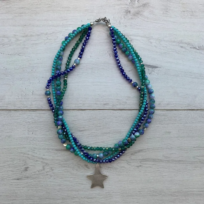 Multiple necklaces with star details. Silver plating details are black-out premium finish. AYN&BYEBRUKETENCİ brand, which believes in the unique energy of every stone and every color and uses eye, evil eye bead and theme in its designs, stands out with its original design and quality. All our products use steel wire and the best quality beads and intermediates on the market. The quality responsibility of all products purchased from AYN&BYEBRUKETENCİ seller store belongs to our company. The feedback of our customers is very valuable for us The