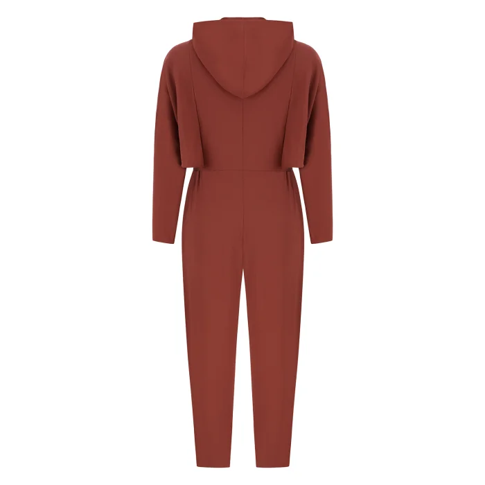 Bat wing sleeve, zippered, hooded, overall.