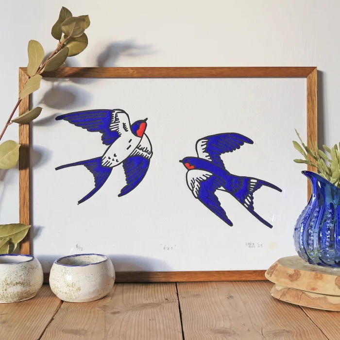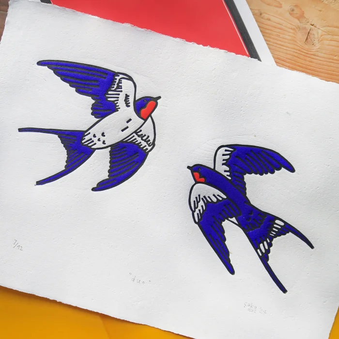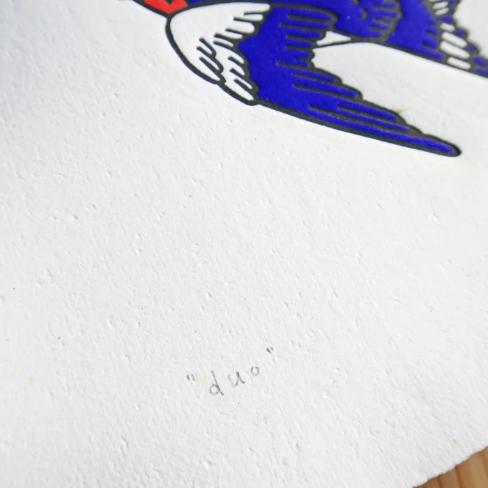 "duo" Dovetail linocut print.